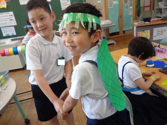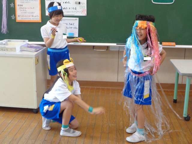 猫やライオン、カッパ等、イメージを広げながら製作し、最後には変身ショーを楽しみました。