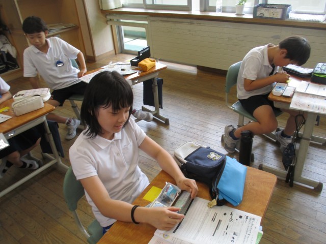ソーイングセットの中身を出し、道具の名前や使い方、安全な使い方についてワークシートにまとめました。今後のソーイングがとても楽しみですね。
