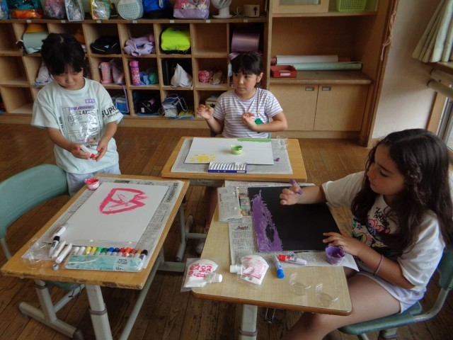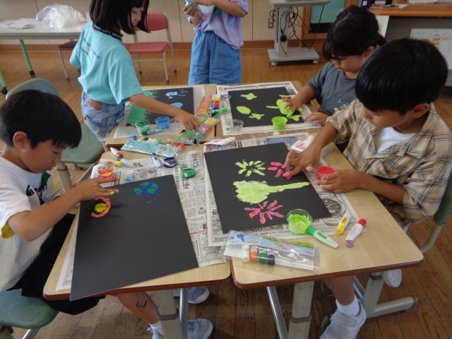図画工作科「とろとろえのぐで」の様子です。