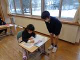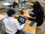 6年生4人が、1年生と一緒に朝学習をしました。1年生が問題に困っていると、温か...