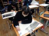 1月26日(木) 6年生 校舎の絵の下書きをしています