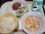 今日の献立は、ごはん、牛乳、和風ハンバーグ、かぶのサラダ、卵と豆腐のスープです...