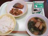 今日の献立は、ごはん、牛乳、豆とかぼちゃのコロッケ、昆布和え、白菜鍋、味付け小...