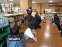 岩瀬図書館へ行って図書オリエンテーションを行いました。ラベルに注目して本の探し...