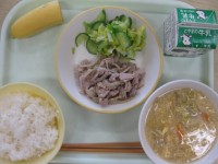 今日の献立は、ごはん 牛乳 豚肉の塩こうじ炒め きざみ和え 中華かきたま汁 ...