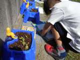 21日に植えたあさがおの芽が土の中から出ようとしています。人差し指くらい芽が成...