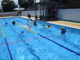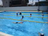 夏休みが始まりました。今日は学校のプールに30名あまりの子供たちが泳ぎの練習に...