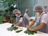 ますのすしミュージアムでは、手作り体験をしました。笹を等間隔で並べたり、ますを...