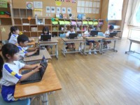 これまでに学習した平仮名と片仮名の文字を、学習者用端末を使って復習しました。操作...