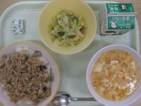 今日の献立は、ごはん 牛乳 厚焼き卵 野菜ソテー 肉豆腐 です。