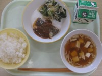 今日の献立は、ごはん 牛乳 さばの竜田揚げ ごま和え 豚肉の炒め煮 です。