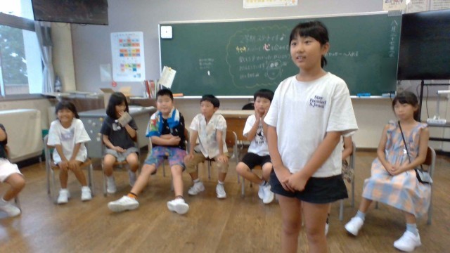 2学期が始まり、3年生の子供だちは元気いっぱい過ごしました。夏休みの宿題をみんなで見合ったり、フルーツバスケットで楽しみながら夏休みの思い出を話したりしました。