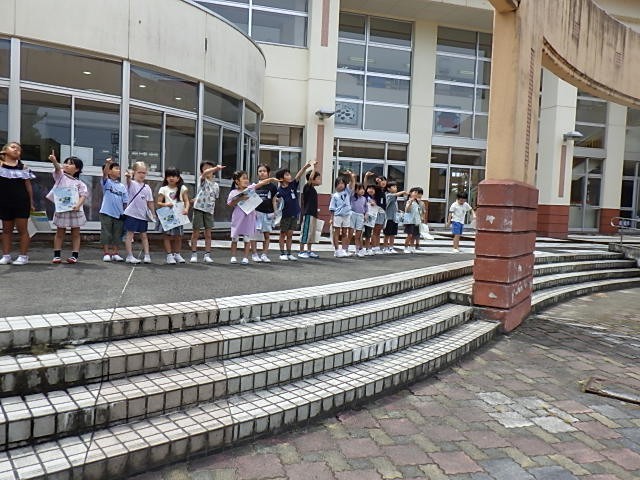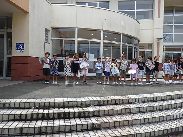 国語科の学習で「いちねんせいのうた」を音読しました。一年生の「一」の文字を空に向かって書いてみました。