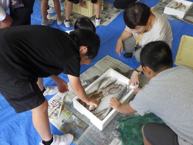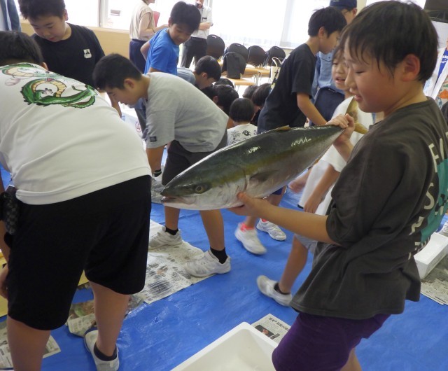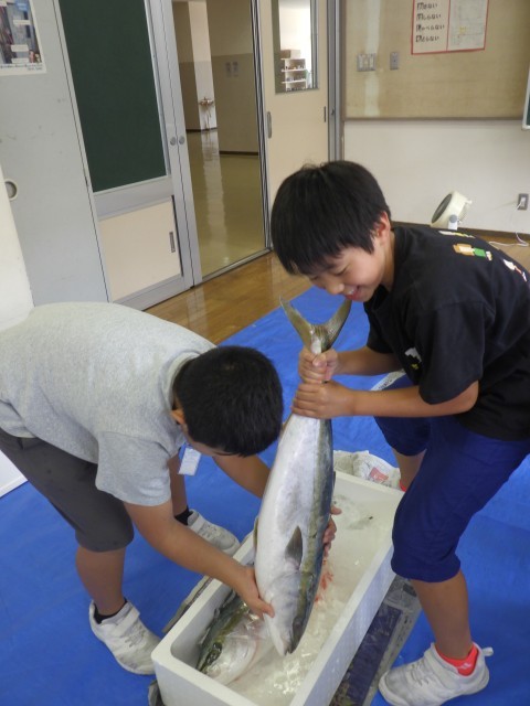 今日は富山県でとれた魚に関する実感体験学習を行いました。実際に魚を触ったり、漁師の方からの話を聞いたり質問したりすることができました。本物の魚を見たり触ったりすることで様々な発見があったようです。子供たちはとても楽しそうで進んで質問する姿も見られました。社会科でも漁業について勉強していますが、今日は魚に対しての関心をさらに高めることができた貴重な体験でした。