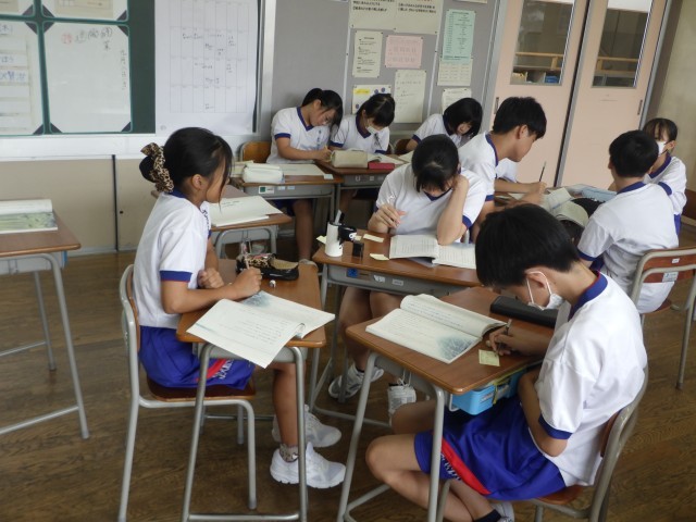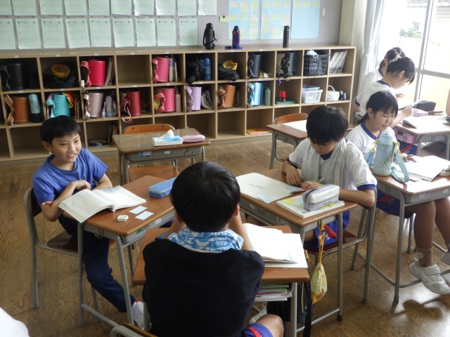 宮沢賢治の「やまなし」の学習をしています。5月の場面で筆者は何を表現したかったのか、話しながらいろいろな意見を出しました。