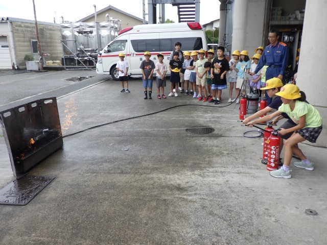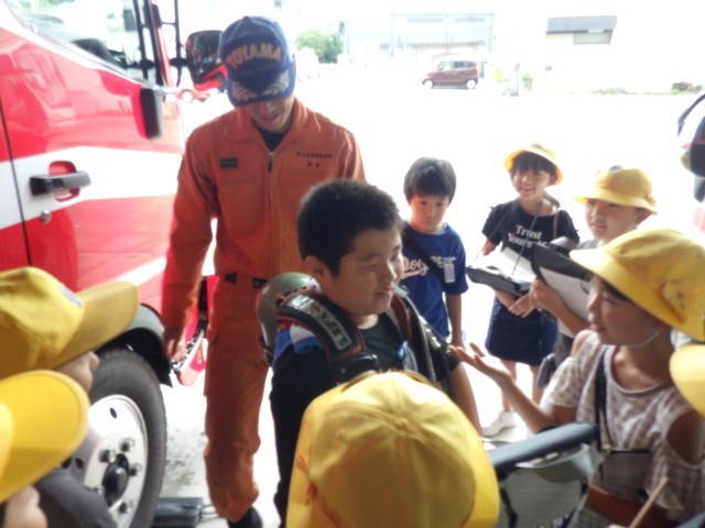 富山消防署に見学に行きました。消防署の設備や仕事内容を聞きました。消火器体験もさせていただき、火事の怖さを感じていました。