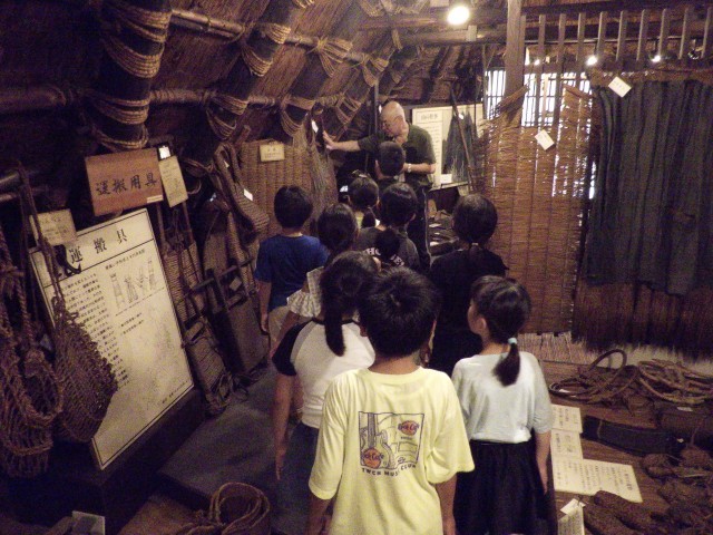 午後からは民俗民芸村に行きました。昔の人々のくらしを見学し、くらしの工夫がたくさんあることに気づいていました。
