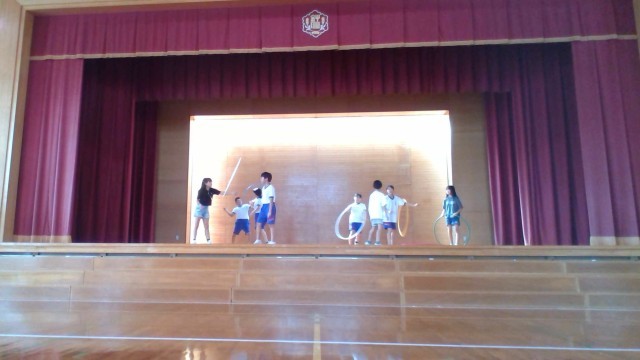 学習発表会に向け、体育館で音楽に合わせるなどの練習を始めました。休み時間にも率先して練習しています。