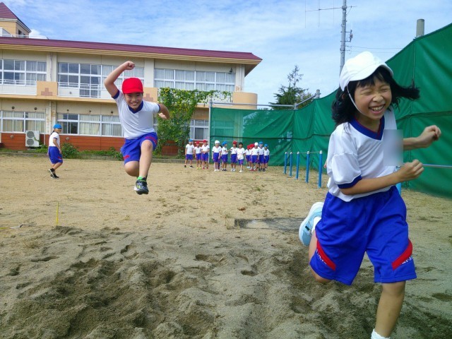 走り幅跳びを行い始めました。初めて行う競技に不安を感じていましたが、跳び方が分かると「もっと跳べるようになりたい」と意欲を高めていました。