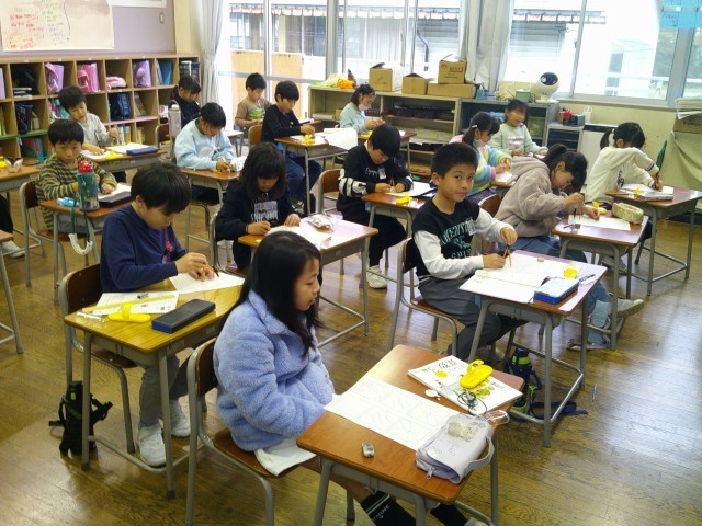 コンパスを上手に使うために、円を使って書くことができる図形に挑戦しています。