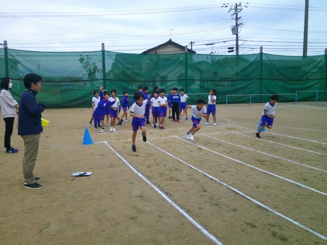 50m走をしました。記録が伸びているドキドキしながら、全力で走っていました。