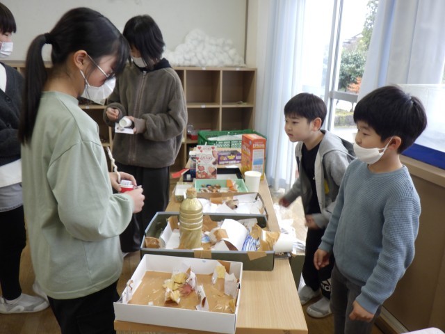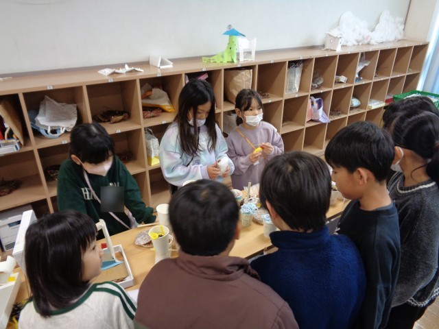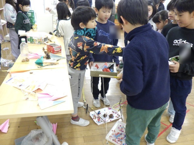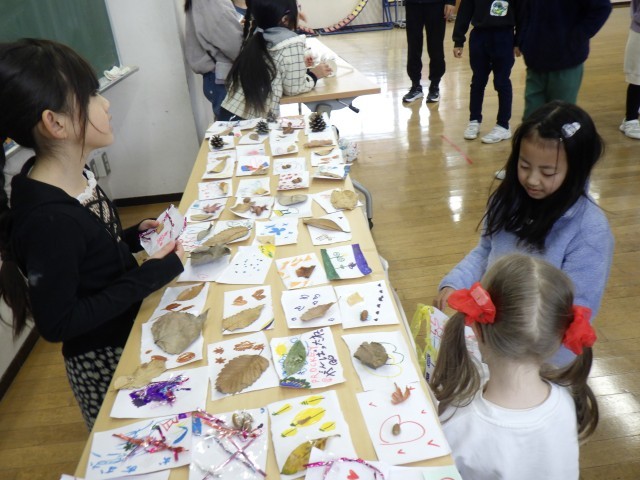 1年生は、生活科「あきをたのしもう」の発表をしました。今回は全校のみんなへ来てくださいと放送しました。たくさんの友達が遊びに来てくれました。1年生も「たくさんのお客さんが来てくれて楽しかった。」と話していました。とても充実し、満足できたようです。