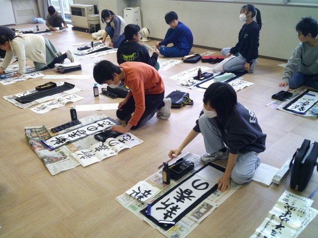 書初練習の2回目を行いました。前回より上達しようと手本を見ながら一生懸命書いていました。