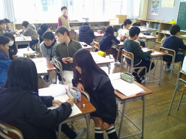 今日は、ひし形の求め方について考えています。ペアで説明し合いながら、理解を深めています。