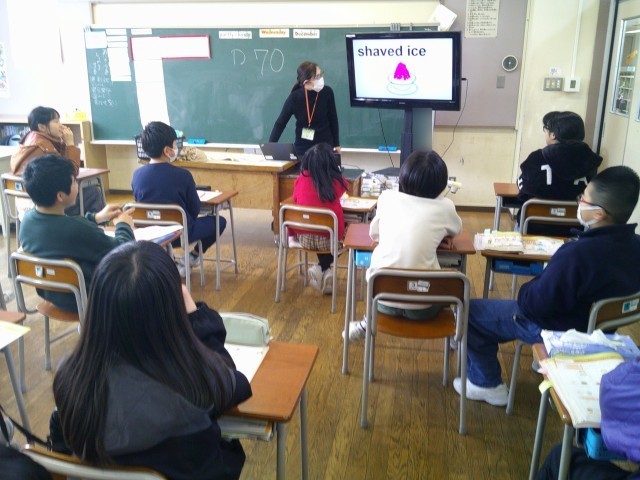 食べ物についての英語表現について学んでいます。単語を何度も繰り返して発音していました。
