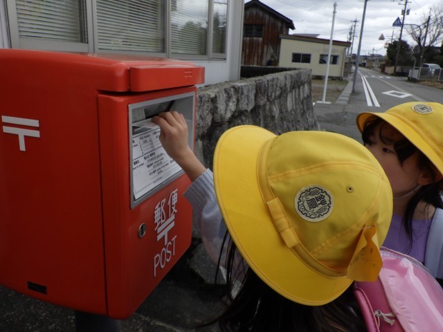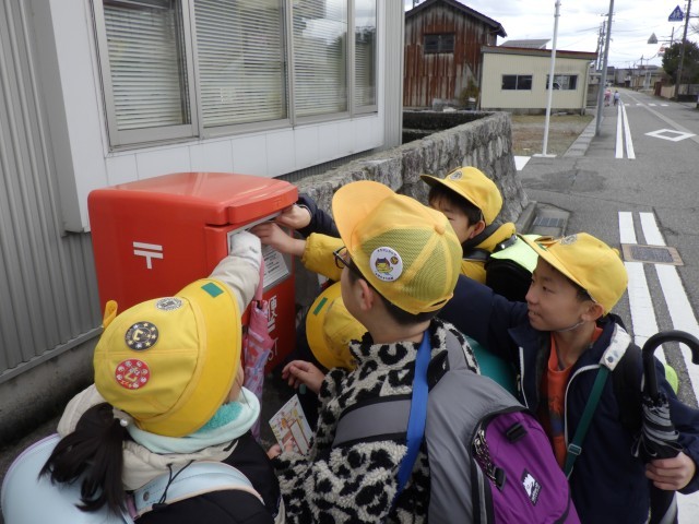 書いた年賀状は、学校のすぐ近くにある郵便ポストに投函しました。