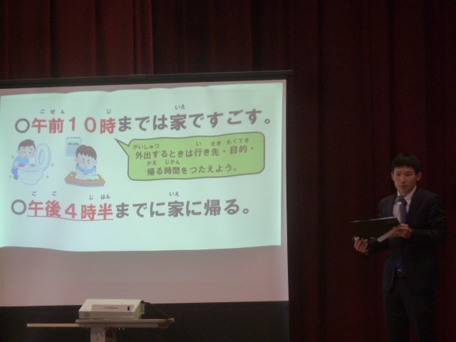 生徒指導や交通安全を担当する先生たちから、冬休みの過ごし方について話がありました。規則正しく生活し、安全に気を付け、楽しい冬休みにしてください。