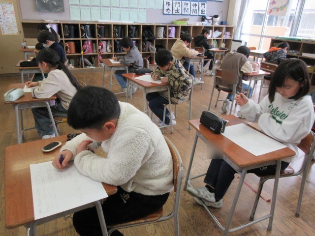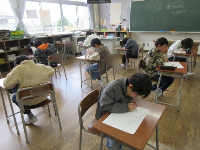 今日は、算数の学習のたしかめテストをしました。子供たちはマイノートでしっかりテスト勉強をしてきていました。