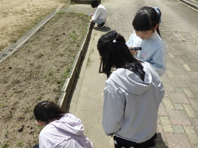 今日は初めての理科の学習を行いました。「春の生き物、植物といえば・・・」と先生の問いに対し、「うぐいす」「チューリップ」と子供たちは積極的に発言していました。また、実際に生き物を観察する場面では、見る視点を変えて観察する一生懸命に学ぶ子供たちの姿が見られました。