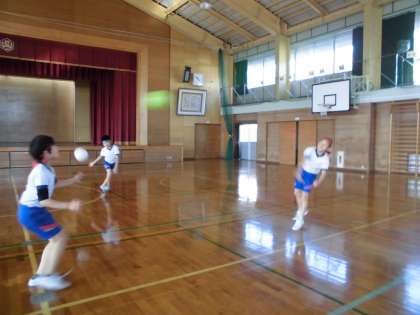 キャッチバレーボールの様子です。キャッチの数を一回にした、今までよりレベルアップした学習を行っています。今日は、ためしのゲームをしました。ゲームを通して、ルールや動きの確認ができました。熱中して活動していた子供たちです。