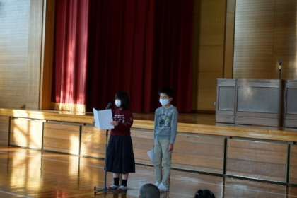 次に、3年生の代表児童が、「2学期にがんばったこと」「3学期のめあて」について、発表しました。