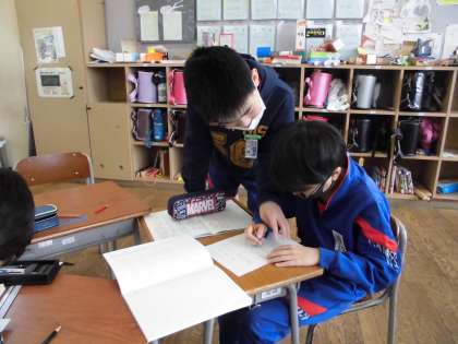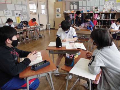 「調べて話そう、生活調査隊」の学習を進めています。生活のことで、「みんなはどうしているのだろう」と思うことをアンケート調査し、発表する学習です。今日は、グループごとに、アンケートを作りました。質問の内容や、答え方はどうするかといったことを話し合い、協力して学習を進めました。