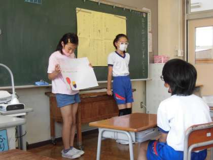 学級活動では、学級集会をしました。係ごとに出し物を考え、自分たちで進行しました。笑顔で楽しく活動しました。
