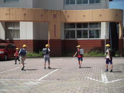 式の後、来週からの学校生活で、感染予防のために改めて気をつけてほしいことについてのお話がありました。下校の時間には、友達との距離を保つことを意識して歩いている姿が見られました。