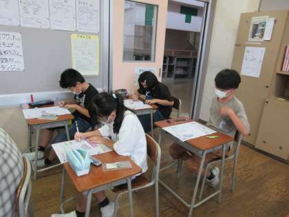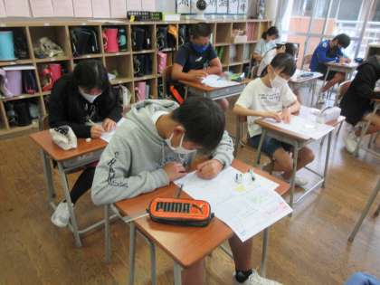 「拡大図・縮図」の学習のまとめとして、テストをしました。2学期最初のテストでしたが、どの子も落ち着いて真剣に取り組みました。