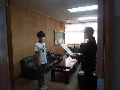9月9日(木)今回の授賞伝達はMeetを使って行いました。各教室で様子を見ていた子供たちからは、頑張りをたたえる大きな拍手が聞こえてきました。