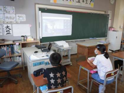 朝の会の時間にリモートでの受賞伝達がありました。学級の友達の頑張りから刺激を受けていました。
