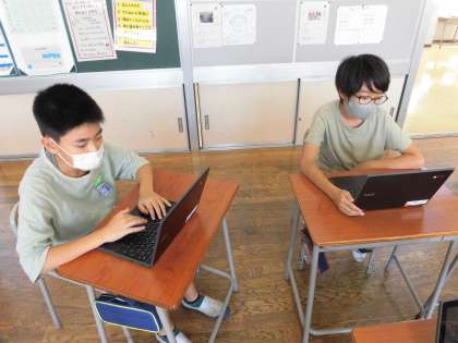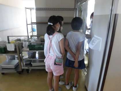 総合の学習では、針原小学校の食べ残しを減らすための計画を立てるために、調理員さんにお話を聞きに行くグループや、食中毒の予防を呼びかけるポスターづくりをするグループが見られました。