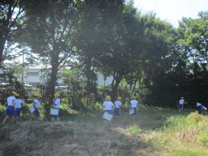 理科で、「こん虫をしらべよう」の学習をしています。校庭で見つけたトンボやバッタの体のつくりに着目しながら意欲的に観察していました。