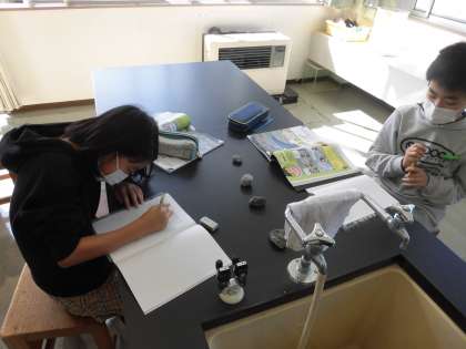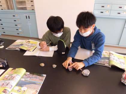 理科では「流れる水のはたらき」の学習をしています。常願寺川の上流、中流、下流の石を比べて、気付いたことを話し合いました。見た目だけでなく、触った感触からも学ぶことがありました。
