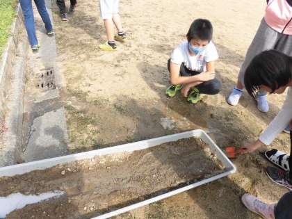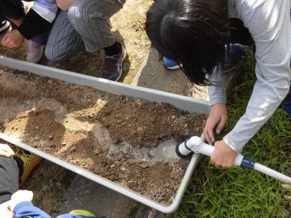 理科では、流れる水のはたらきを学習しました。流れる水には、土を削ったり、運んだりするはたらきがあることに気付きました。