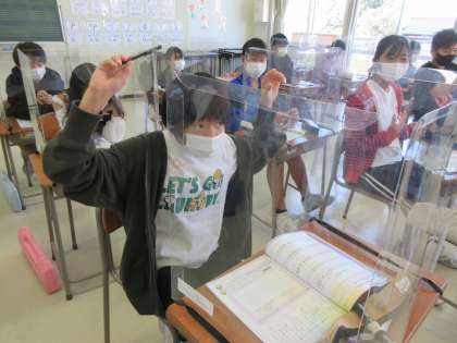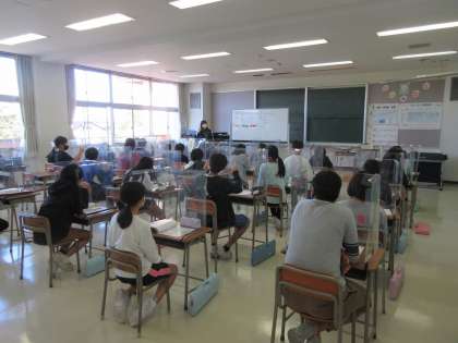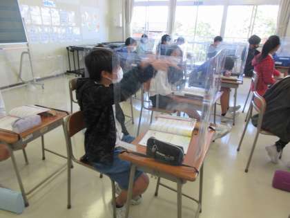 音楽は、パーテーションを用いて感染対策をしながら学習を進めています。今日は「思い出のメロディー」を聞き、曲想の変化を感じ取りました。体を動かしながら曲を聞いている子の姿も見られました。