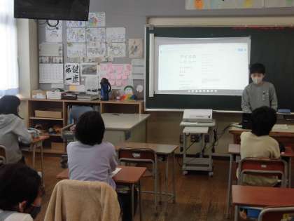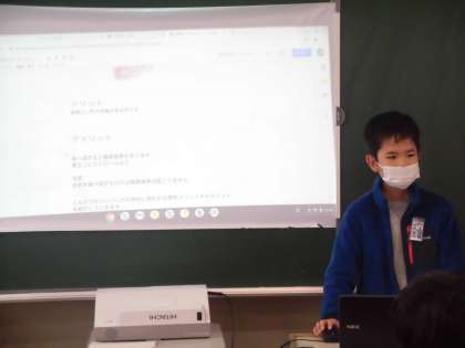 食の歴史について調べたグループは、クロムブックを使って発表し、アンケートをとりました。イラスト等を交え、楽しい雰囲気で発表をしました。