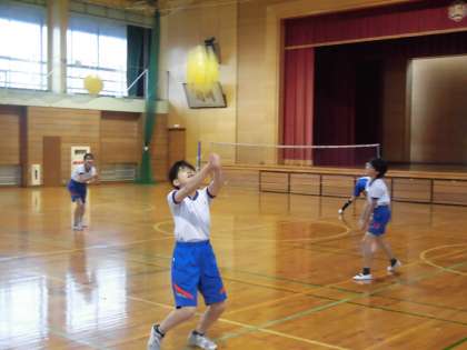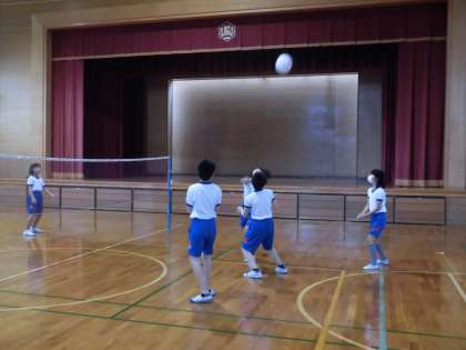体育では、ソフトバレーボールに取り組んでいます。チームで協力して、何回ラリーが繋がるかを数えました。楽しく運動することができました。