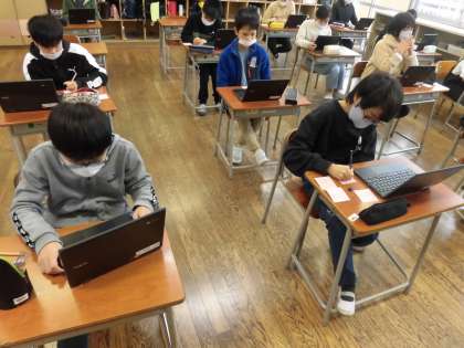 国語では、意見文を読み合って感想を伝えました。テーマによっていろいろな考えがあることに気付く子供たちでした。