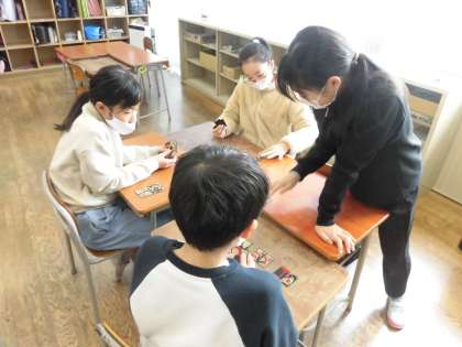 学級活動では、百人一首や花札などをして楽しみました。男女仲良く活動しました。